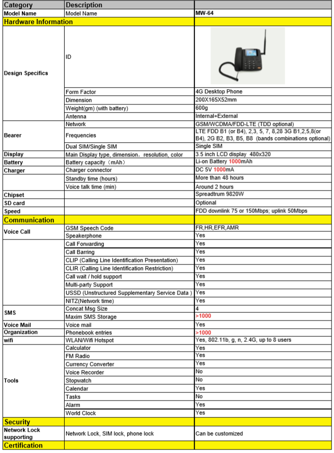FDD B1 (or B4), 2,3, 5, 7, 8,28 3G B1,2,5,8(or B4), 2G B2, B3, B5, B8 (bands combinations optional)